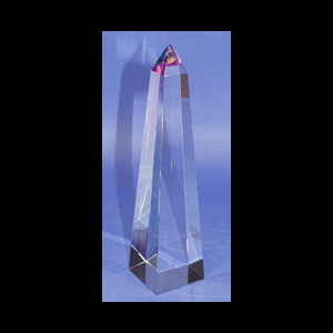 DESCRIPTION: This is a copy of the Washington Monument obelisk. They come in four heights - 8", 10", 12" and 14" with the bottom of each piece di-chroic coated. The top section reflects a variety of wonderful colors from reds to blues to purples.
