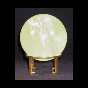 DESCRIPTION: Shown on our #216 stand, these Calcite Spheres are a quality that is hard to find today. Color ranges from lime green to orange. Sizes are from 2 1/2" up to 5 1/2." Call for details.