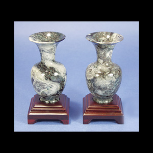 DESCRIPTION: These are wonderful pairs of Jasper vases on the best carved wood bases we have ever seen. The presentation box is so good that it will help sell the vases.