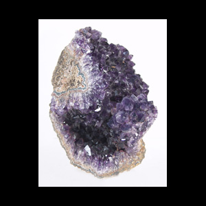 DESCRIPTION: This amethyst from Uruguay has deep colored crystals and natural rock (unpolished) bottom and sides. The weight is 2.9 lbs. Call us the toll free line (800) 221-4456 for the special price.