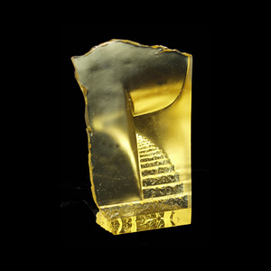 DESCRIPTION: The "Golden Stairs" is truly a remarkable piece. It is made using the 2,000 year old Chinese art form of "Pate de Ver" or "Lost Wax". Each piece goes through about 8 stages before being put into the temperature controlled ovens and takes from 6 to 25 days to make. Although the shape and size are always the same, the color will vary somewhat depending on how the colors melt and mold. These are truly collectable.