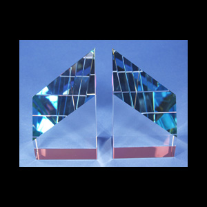 DESCRIPTION: The di-chroic coating on the bottom of this pair of bookends reflects a beautiful array of multi-colors. They are made of the finest clear optical glass available. These will surely be an enhancement to any bookshelf. Note: the size is for each half.