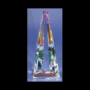 DESCRIPTION: This wonderful piece has a flat back and 9 facets on the half round front. Color is reflected all the way up and down the face from the di-chroic coated base.