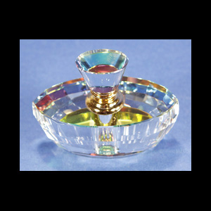 DESCRIPTION: These perfume bottles are made from the finest optical glass. Both the bottle and the stopper have a di-chroic coating creating a spectacular array of reflected color.