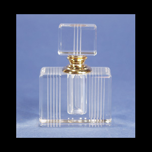 DESCRIPTION: Elegant! That is the word to describe this perfume bottle. It is made from the finest clear optical glass. This is contemporary art at it's best.