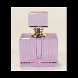 DESCRIPTION: Elegant! That is the word to describe this perfume bottle. It is made from the finest optical glass. This is contemporary art at it's best. The true color is purple. But, under flourescent lights the color shifts to a beautiful sky blue.