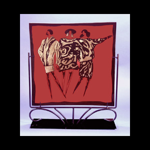 DESCRIPTION: These are molded glass plates that have been gold and/or silver leafed in the back. The silver or gold leaf is then given a clear coating for protection. They are "food safe" so use them either as a decorative piece or as a serving dish. An acrylic display stand is available. Shown on #850 black metal display stand (extra).