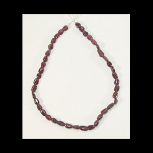 DESCRIPTION: 16" strand - 8mm x 7mm oval These beads sparkle with red "fire". They certainly meet our standard of high quality and unusual shape.