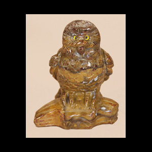 DESCRIPTION: This owl is carved out of petrified wood, which means it has the look of wood but the feel of stone. They are all carved to the same pattern but each will have a slightly different wood grain.