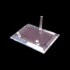 DESCRIPTION: This Acrylic display stand is Diamond Cut with three pegs and Bump-on Feet to prevent scratching. A larger 163 is available measuring 3” x 4” x 1” thick