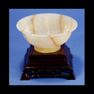 DESCRIPTION: These Orange Calcite bowls are thin cut so that they are completely transluscent. They come with a hand carved wood base and in a beautiful presentation box.