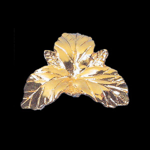 DESCRIPTION: 24K gold plated. This stand is an exact copy of a Singapore orchid leaf. Gread for spheres up to about 50mm. Three small pegs hold the sphere in place.