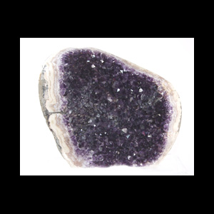 DESCRIPTION: This is a free standing amethyst from Uruguay. It has all polsihed edges with small velvety purple crystals, typical of top grade amethyst from that country. It weighs 8.9 lbs. Call us on the toll free line for the price.