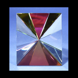 DESCRIPTION: This piece is part of our "Starburst" series with a wider face. The bottom is di-chroic coated to give a reflection of a variety of colors. Call us on the toll free line (800) 221-4456 for further details.